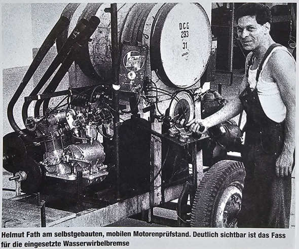 Bei den Motor-Testläufen entstand ein hoher Lärmpegel, da am Aggregat kein Schalldämpfer verbaut war. Um die Ortsbürger von Ursenbach nicht dieser Lärmbelästigung auszusetzen baute Fath auf einem abgelegenen Grundstück einen Leistungsprüfstand. Der Prüfstand befand sich 750 Meter Luftlinie vom Ortskern entfernt. Er bestand aus drei separaten, kubischen Betonfundamenten, welche hintereinander angeordnet waren.